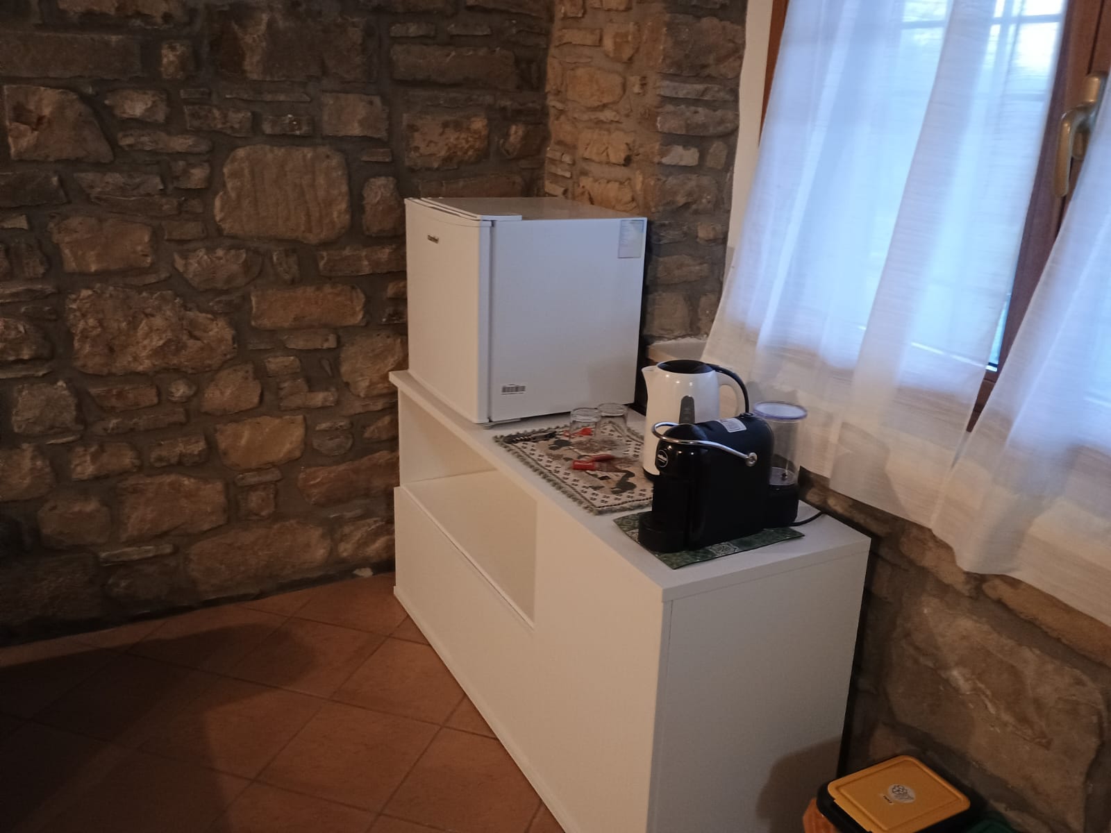 Per i vostri momenti di ristoro, l’appartamento è dotato di un frigorifero e un bollitore elettrico, ideali per preparare bevande calde o conservare spuntini. Avrete a disposizione un tavolo da pranzo e gli utensili essenziali per gustare i vostri pasti in tutta comodità.